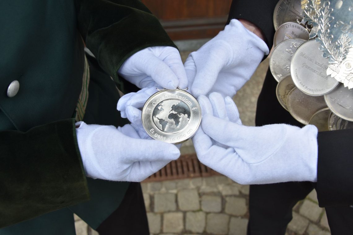 Im Gedenken an die Gefallenen der beiden Weltkriege, die Ehrenmale des Vereins.