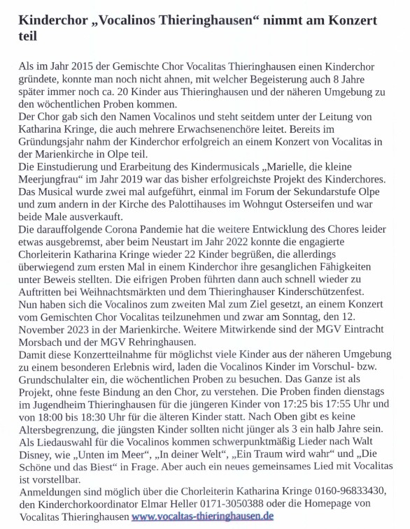 Lesen Sie die weitere Chronik Vocalitas bis 2024. Informationen finden Sie unter vocalitas-thieringhausen.de.